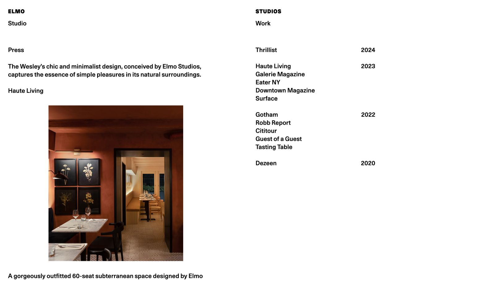 A precise frontend and a simple backend for a NYC design and architecture studio.